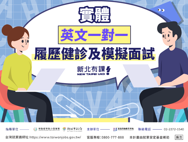 - 聯絡電話:「新北市青年局-線上職涯諮詢服務」官方LINE