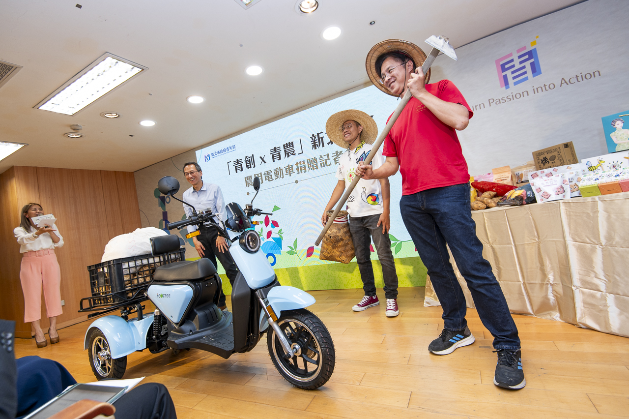 科技新創公司「飛拓數位科技」此次捐贈兩台農用電動車,由新北市青年局媒合在地青農率先使用,展現政府、企業與在地青農攜手落實科技導入農業現場的具體成果。記者會現場同步播放紀錄短片,呈現青農在茶園與地瓜園中操作電動車的真實情境,青農夥伴直呼:「省時、省力又安全,真的幫了大忙!」