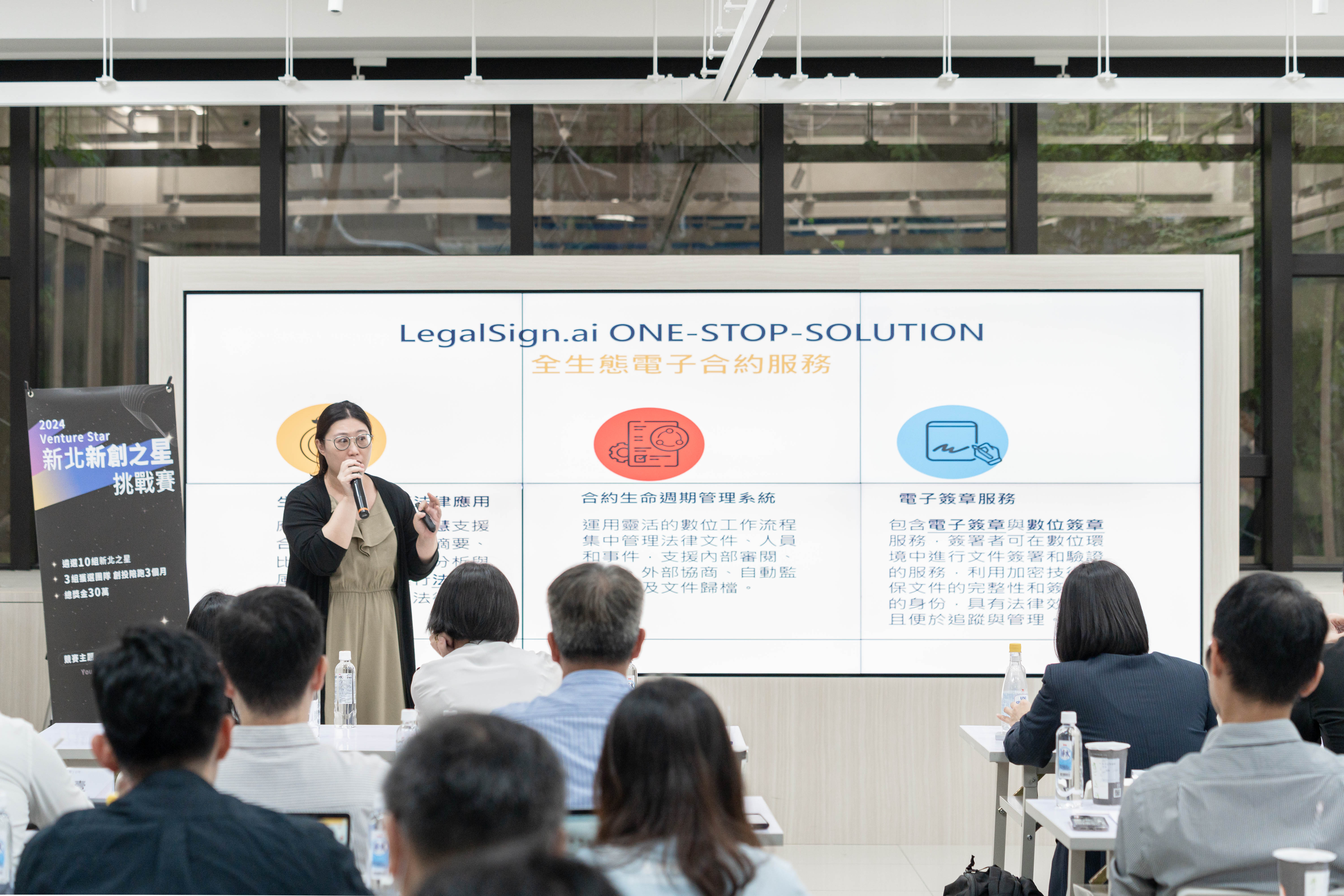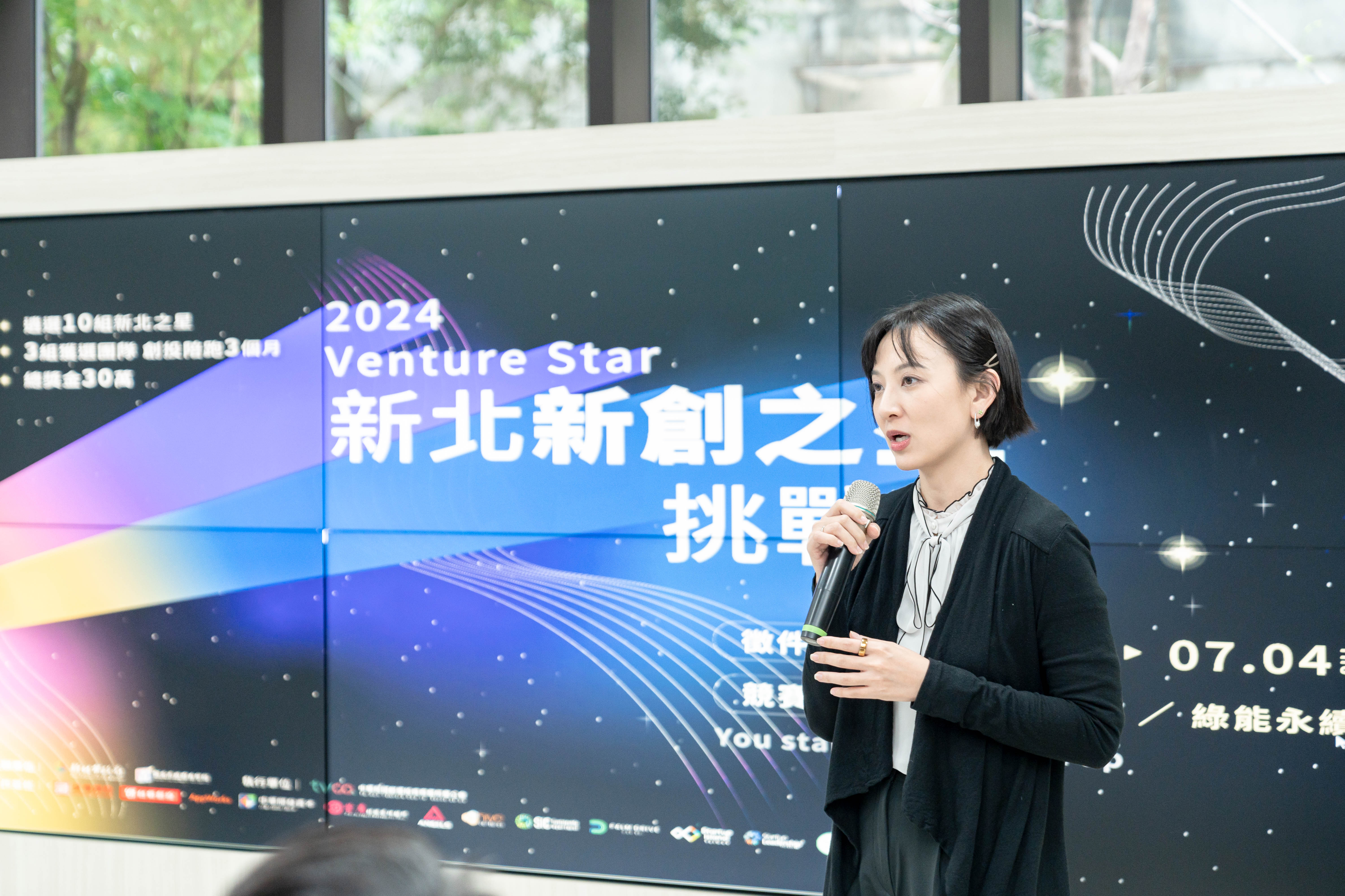新北市政府青年局局長邱兆梅表示,「Venture Star 新北新創之星」是新北市政府為了尋找並協助優秀科技新創打造的挑戰賽,結合創業競賽與輔導加速計畫,旨在讓更多優秀團隊能接觸專業創投輔導資源。本年度為活動第一屆,徵件主題設定為「AI 人工智慧」及「ESG 綠能永續」。來自全台的 74 組團隊中,創業內容涵蓋法律科技、多媒體科技、電動車及智慧物流等前瞻領域,第一階段透過書面審查選出的 50 組團隊在第二階段的兩天 Pitch Day 中,向創投評審展示其創新產品、服務與商業模式,水準實力相當高。第二階段的 10 組入圍團隊將進入為期三個月的輔導階段,使團隊加速成長。