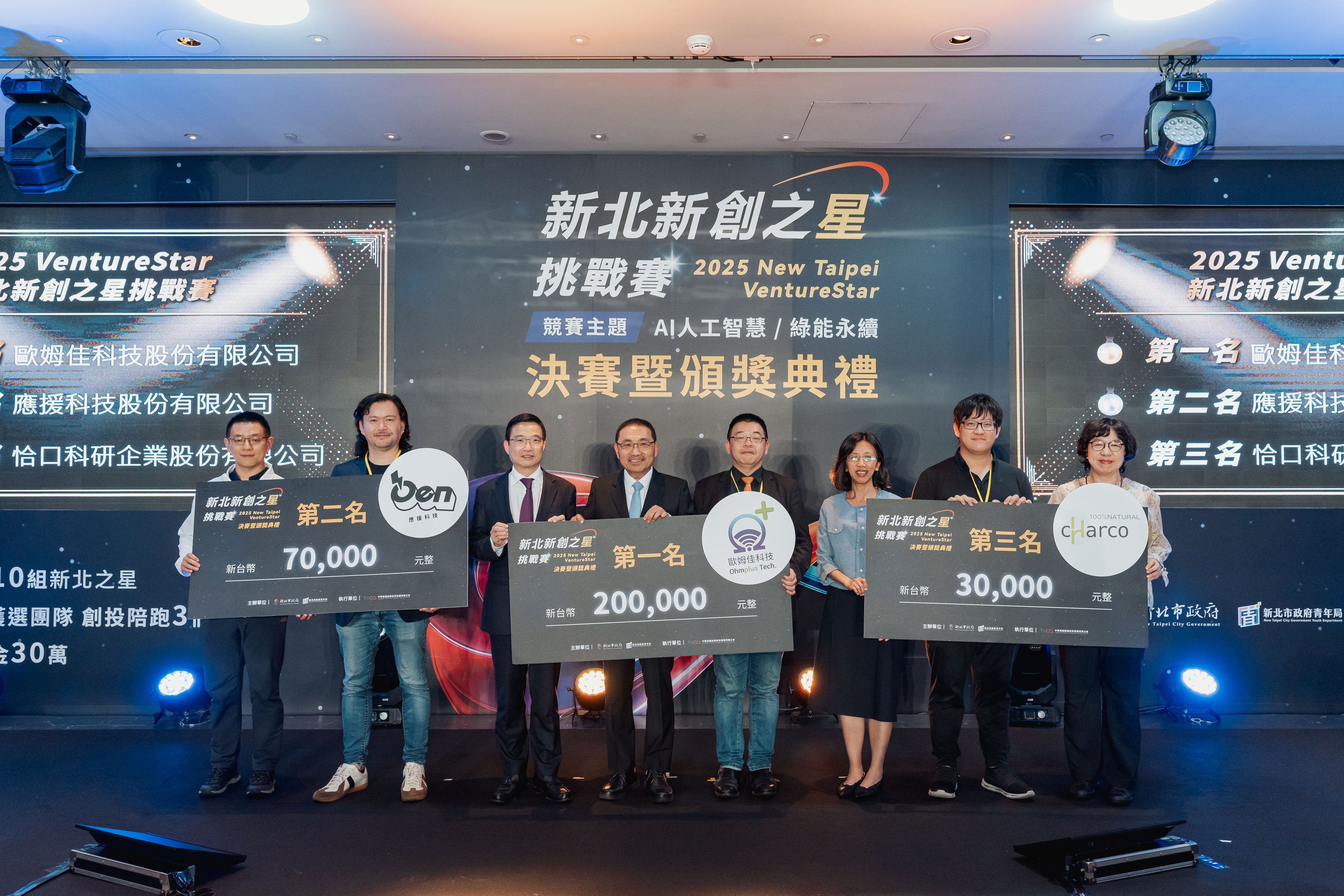 【新北市訊】由新北市青年局主辦、首創結合創投陪跑機制的「2025 VentureStar 新北新創之星挑戰賽」,今(23)日冠軍出爐!由致力於提供半導體和通訊產業高效測試服務的「歐姆佳科技股份有限公司」拿下首獎,第二名為專注打造一站式整合金流雲端平台的「應援科技股份有限公司」,第三名則由致力於智慧農業與永續資材研發的「恰口科研企業股份有限公司」獲得。獲獎團隊除獲得總獎金30萬元,更將參與為期3個月的專屬「創投陪跑計畫」,正式接軌國內外投資市場。