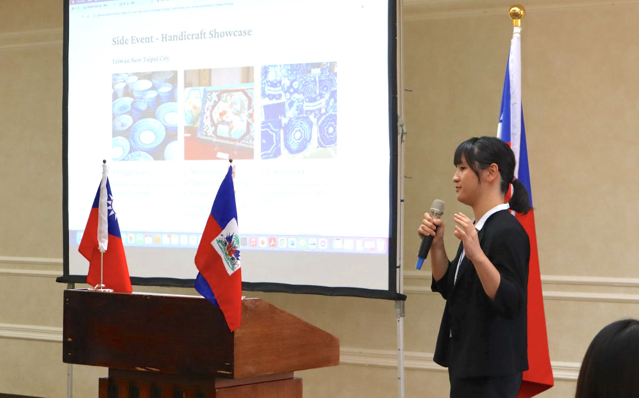 培訓營的重頭戲即向駐台大使館:海地大使館、聖文森及格瑞那丁大使館做交流提案,這不僅考驗學員的英文口說能力,學員需對邦交國背景資料調查及資訊分析後,透過簡報方式,分別提出音樂、舞蹈、原民文化、手工藝等互動新模式,讓海地駐台大使館的維克多漢公使(Mr. Francilien VICTORIN)笑說,學員們都比他自己還更了解海地,對於學員在短短五天內可以完成高水準的簡報給予勉勵。