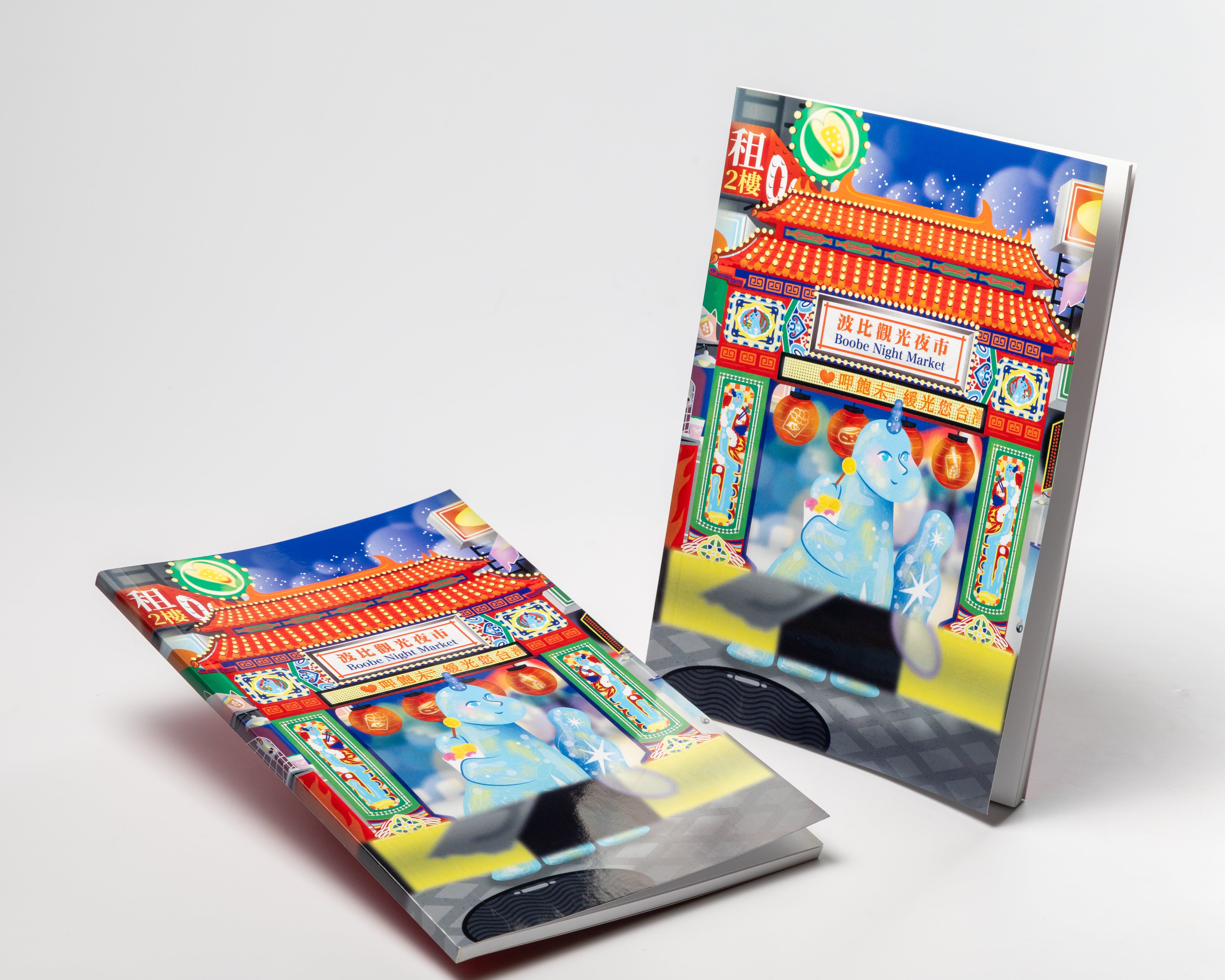 原創繪製的封面為五腳波比與台灣的經典台味識別 - 夜市。這本日記本使用便於攜帶放入包包的尺寸,搭配左翻頁裝幀,更能盡情書寫塗鴉佈置屬於你的心情手札。