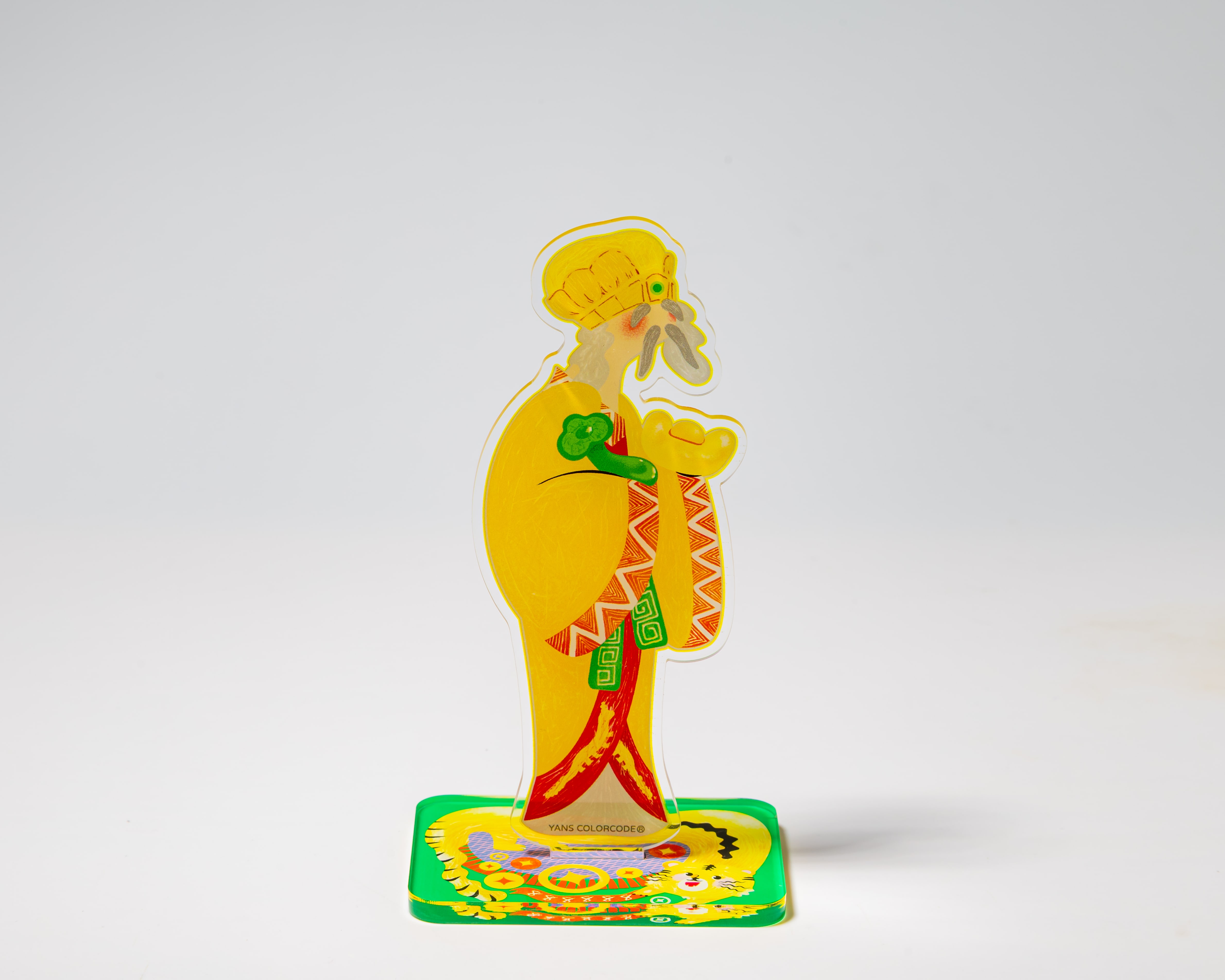 在台灣的市井文化中,祈福擺件是獨特且重要的象徵,這款「祈福擺件」以土地公和五腳波比為靈感,完美融合在地文化與吉祥寓意土地公,作為台灣最受尊敬的祈福神明之一,象徵財富與安泰。
